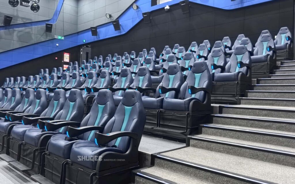 The cinema integrates high-definition laser projection with a surround sound system. At its heart, the 80 Seats 4D motion seating system, powered by servo drives, accurately simulates various effects such as diving, bumping, and vibration, synchronizing seamlessly with the film’s narrative. This is complemented by integrated environmental effects including wind, water, and leg ticklers, working together to create a deeply immersive viewing experience.
