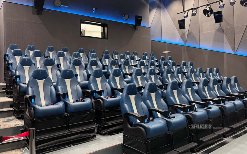 5D cinema in indoor entertainment center, commercial cinema, experience hall, meta universe experience hall, etc